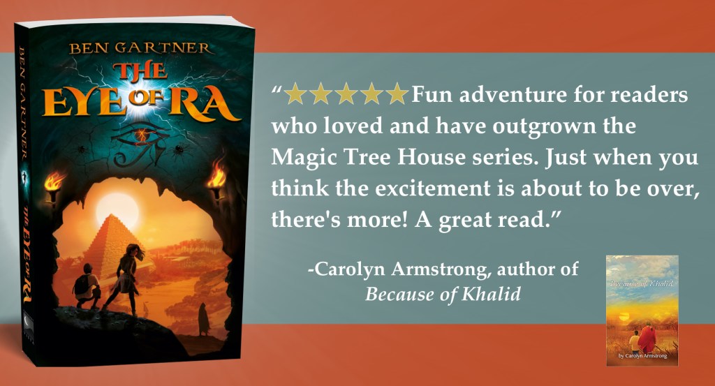 “The Eye of Ra is adventure, suspense, history lesson and cultural exchange all rolled into one fine read! Middle schoolers will identify with your characters and be captivated by your fast paced story. I loved it!” โLouise C.